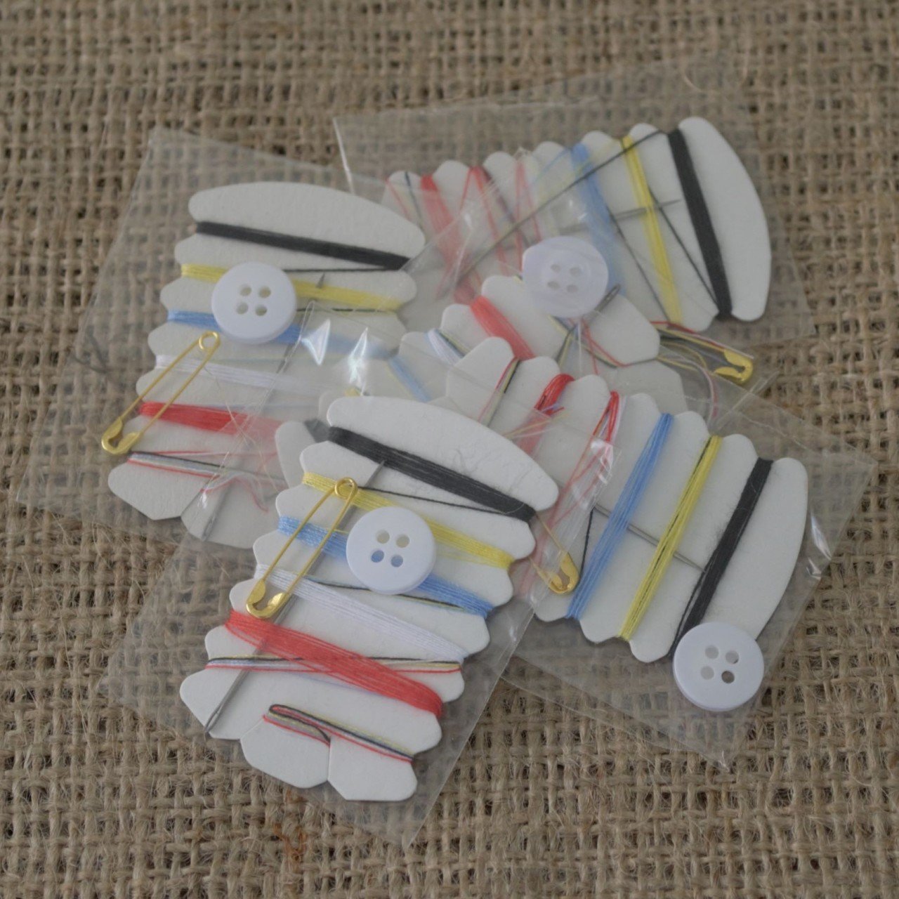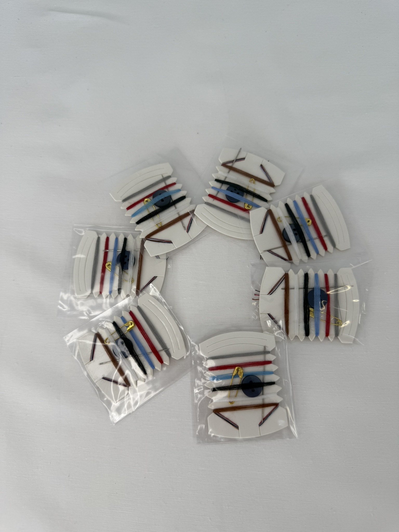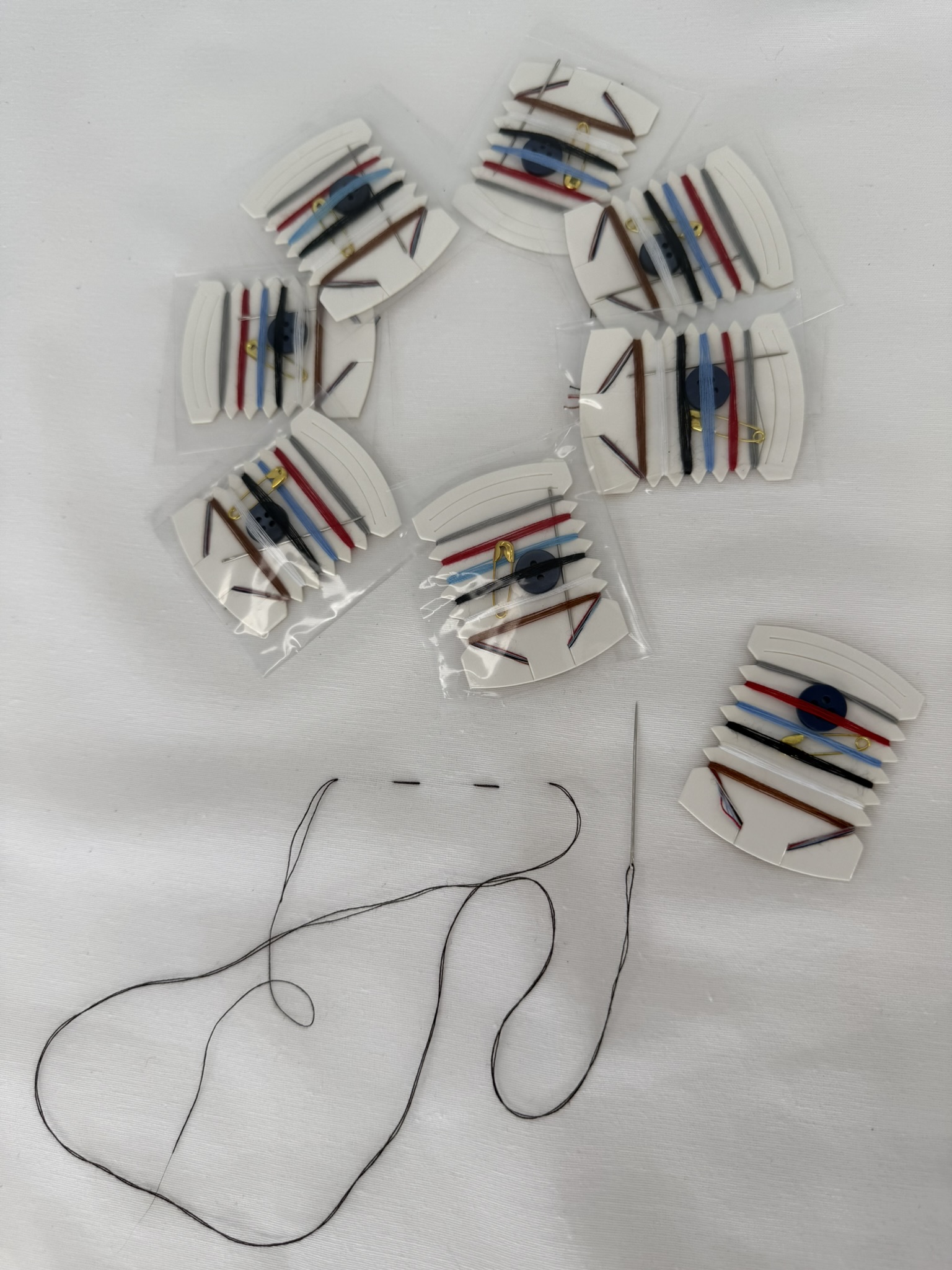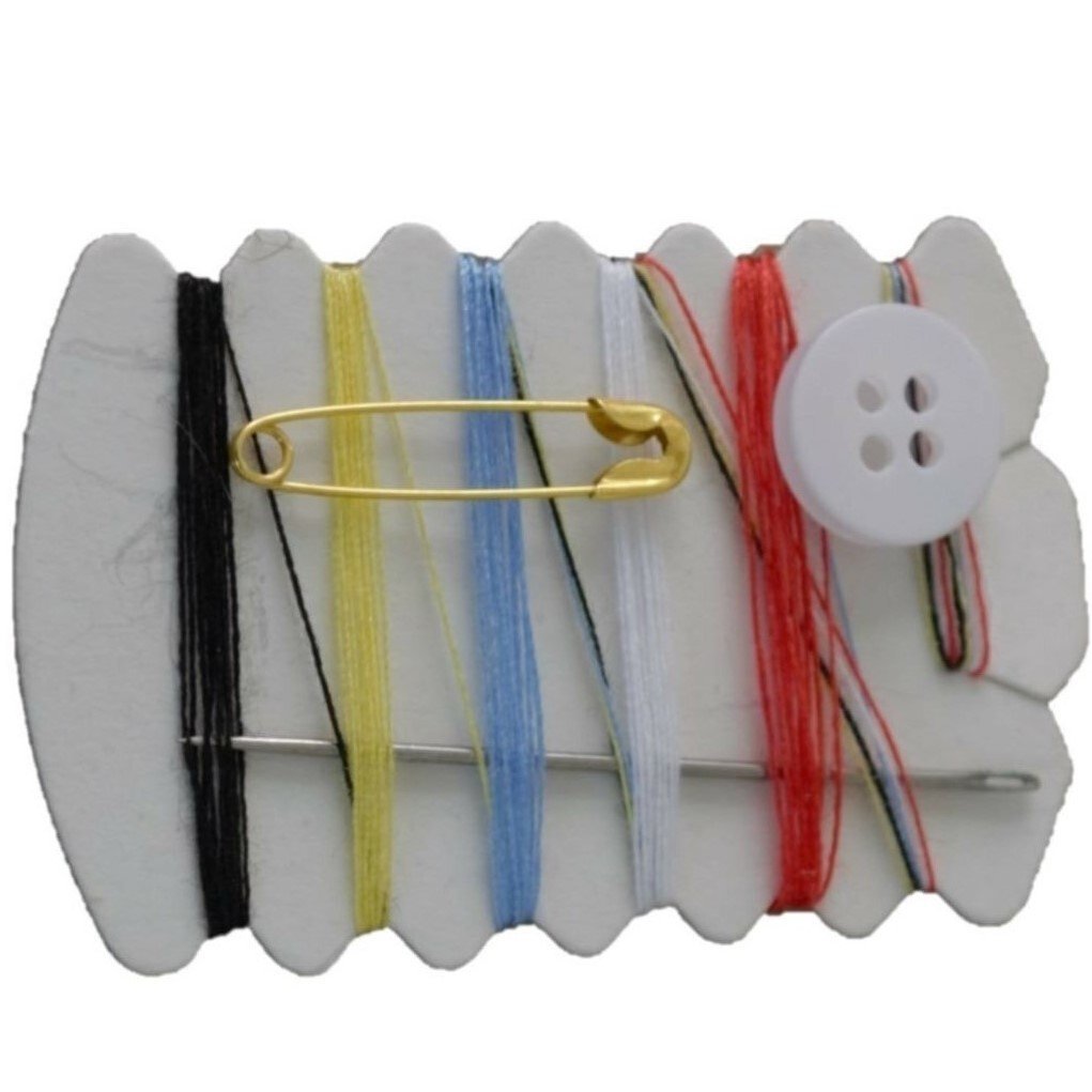 - Tek kullanımlık dikiş seti kutu içeriği :6 farklı renkte iplik, 1 adet iğne, 1 adet çengel, 1-2 Adet düğme bulunmaktadır.